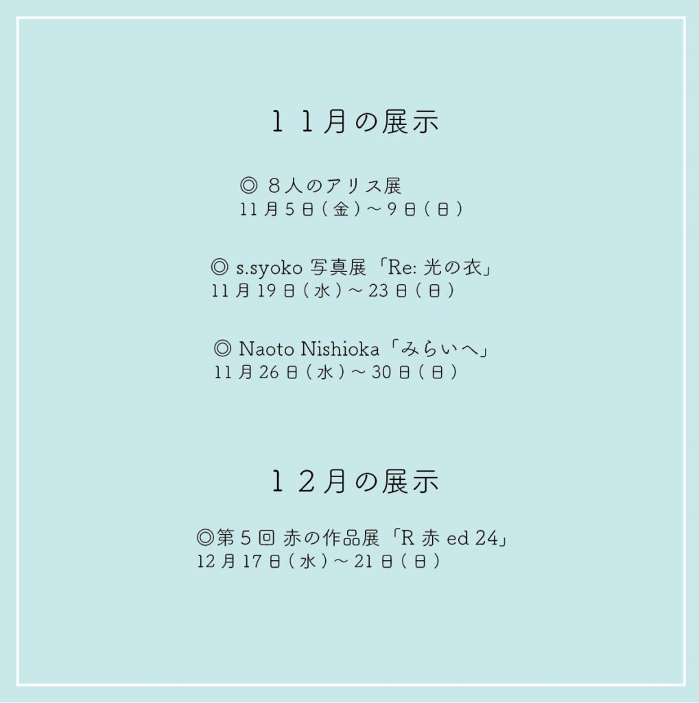 11月の展示案内と営業日